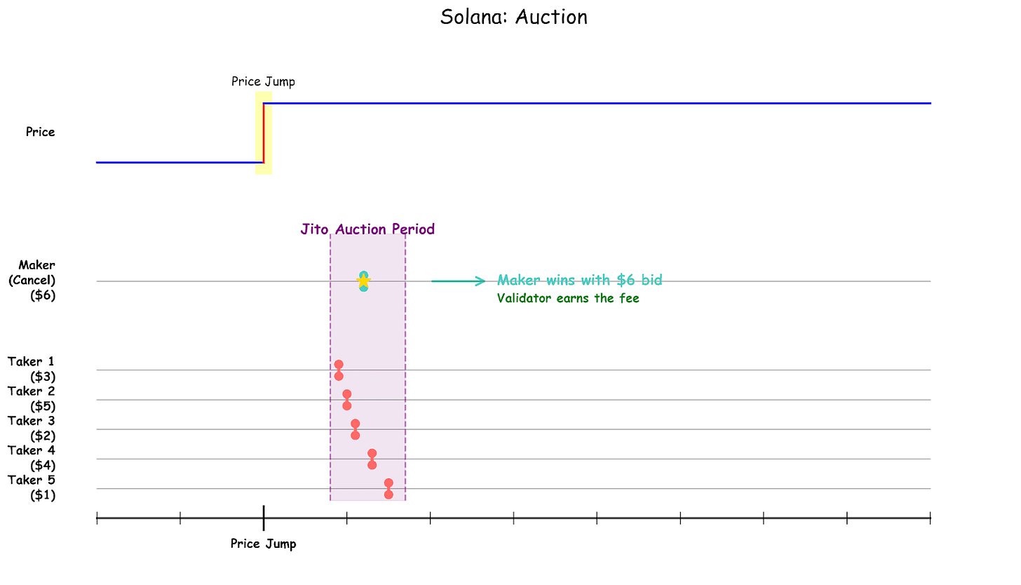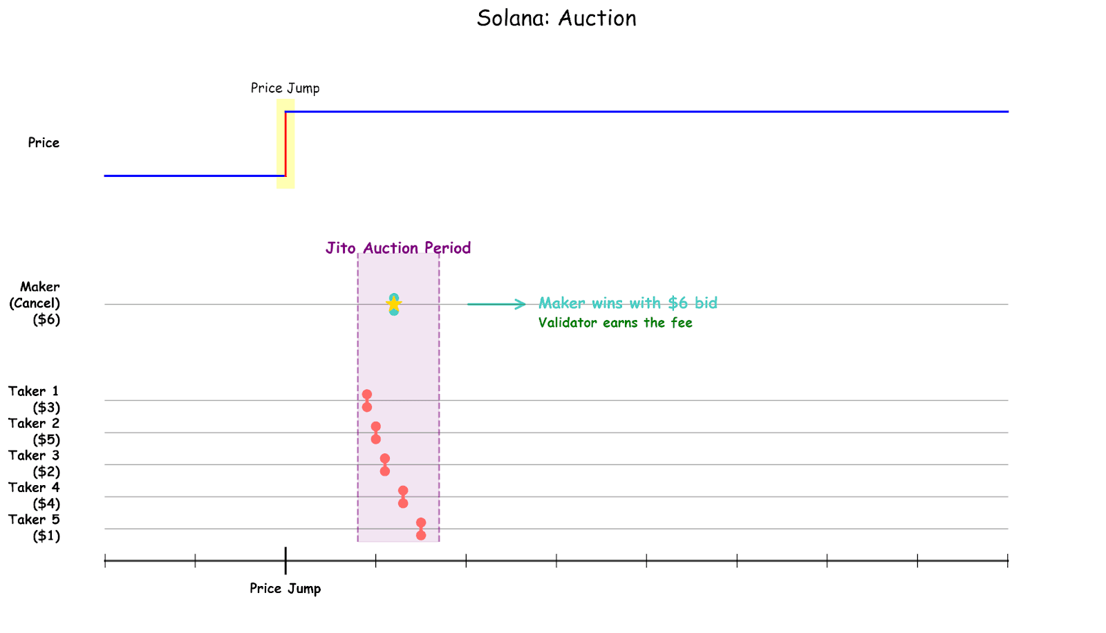 Another symptom of the single leader design is the Jito blockspace auction, making it impossible for market makers to win the race to cancel their quotes before takers can snipe stale orders. Even if the market maker is faster, what matters is who wins the blockspace auction. They can either pay a lot of money to cancel their quote, or they can let somebody else pay a lot of money to snipe them. This means market makers on Solana cancel orders successfully less often than on CEXs.